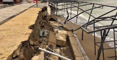 В Судаке из-за шторма обрушилась часть обновленной набережной