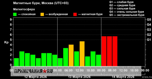Эта буря стала второй в марте текущего года, однако первой действительно значительной. Первая зафиксированная буря произошла 4-го числа и оказалась весьма непродолжительной и незначительной, практически не связанной с внешними факторами. За первые три месяца 2026 года зафиксировано уже 17 дней с магнитными бурями (около 23% общего количества дней), что даже превосходит показатель прошлого года — самого активного за последнее десятилетие, когда доля бурь составила лишь 19%.